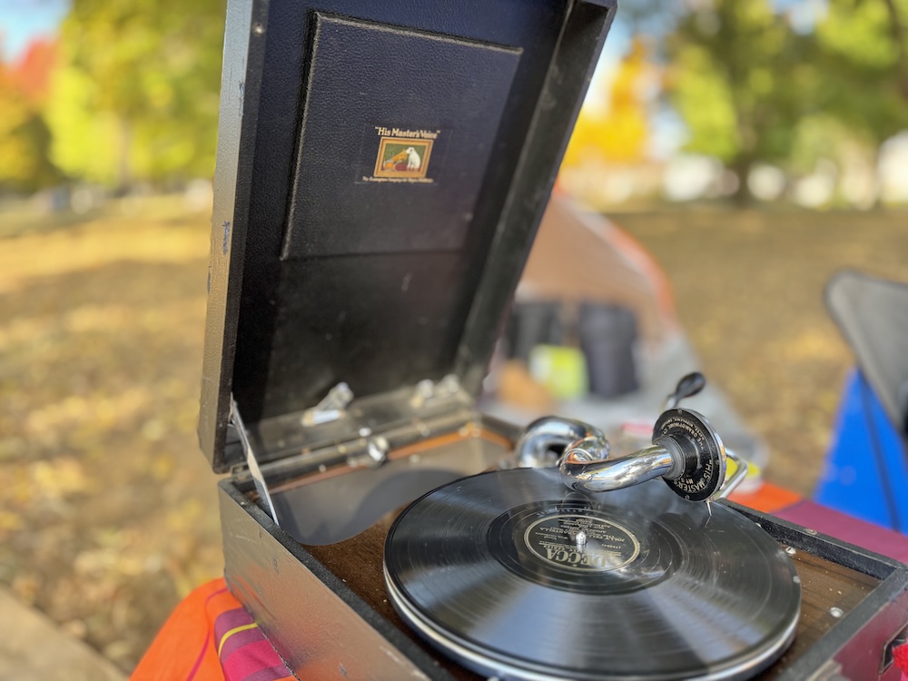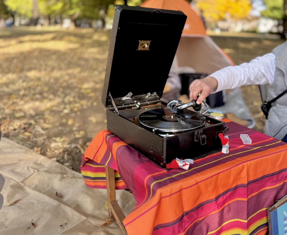 いにしえの蓄音機で鳴らす音楽を間近で聴きながら、オープンエアのリビングでピクニック、最高じゃないですか。
