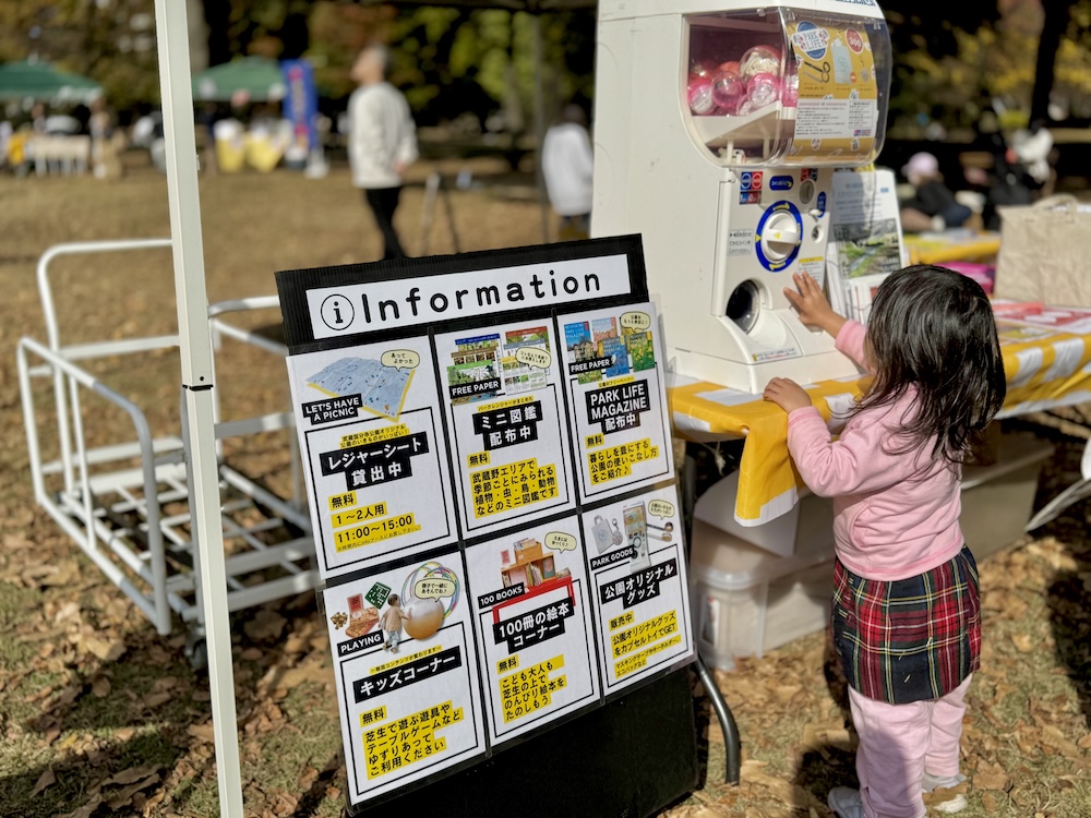 案内所にいらしたスタッフの方によると、このSunday Park Cafeは、都立公園の指定管理者であるNPO法人や企業による運営で、充実した各種無料サービスは、公園内の施設や自動販売機の収益などによってまかなわれているのだそうです。