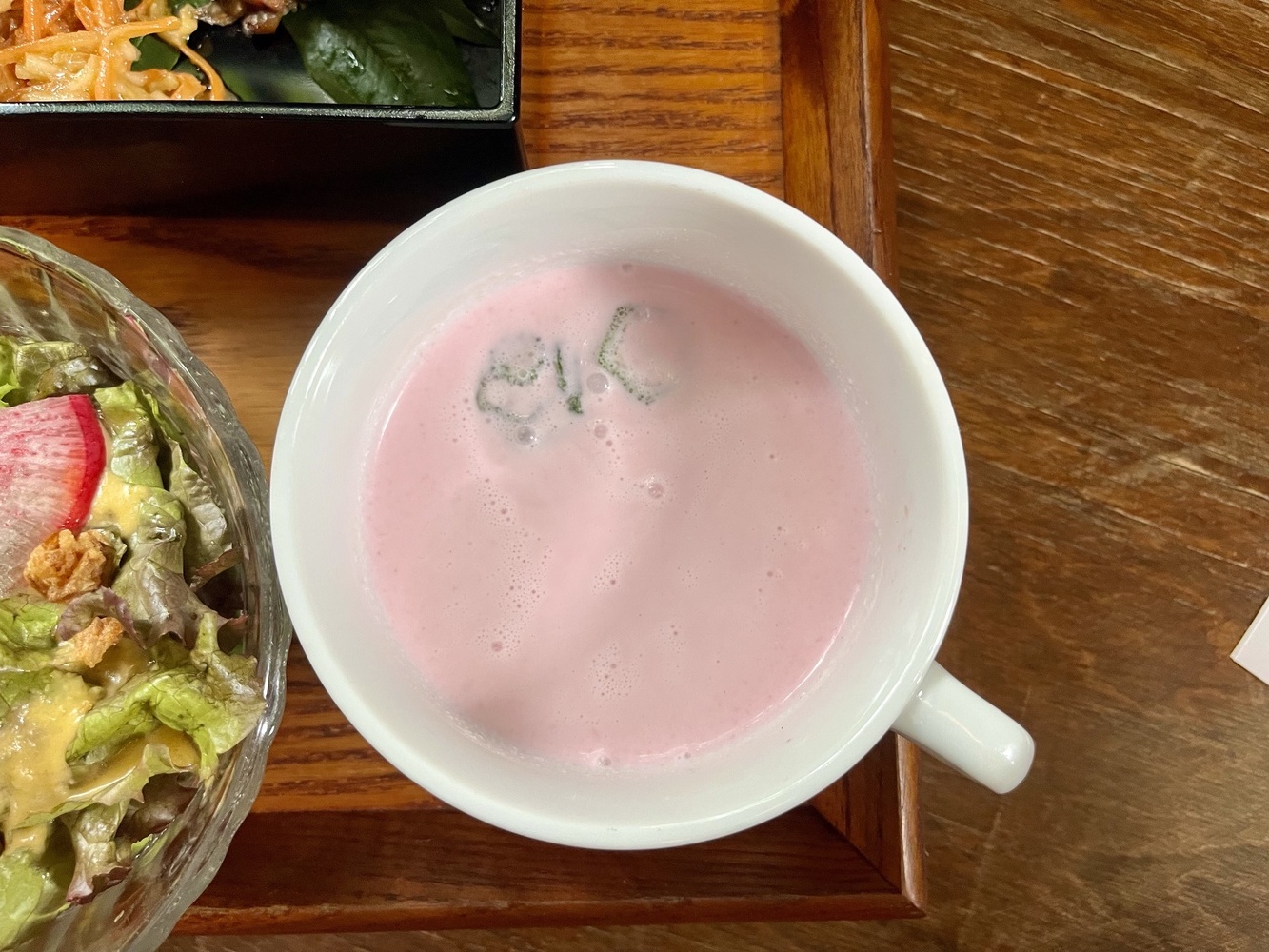 お次は、こくベジのビーツ(赤大根)を使った冷製ポタージュスープ。