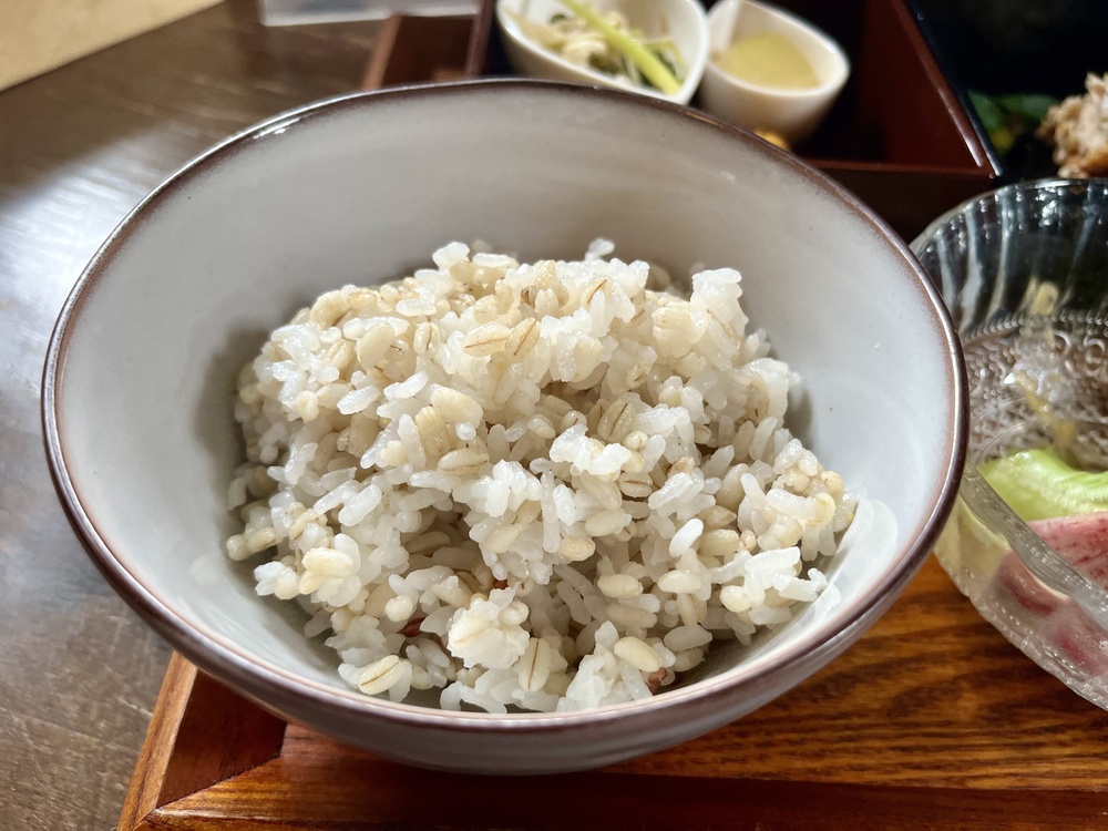 これは麦ごはんですかね。ふっくらと炊きあがっています。