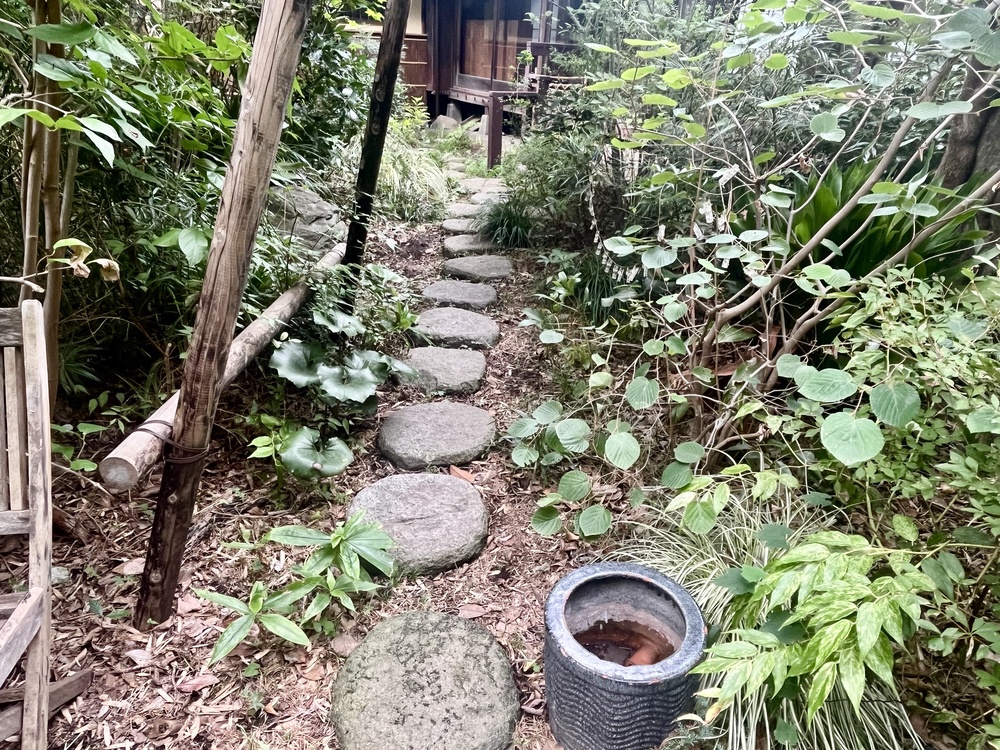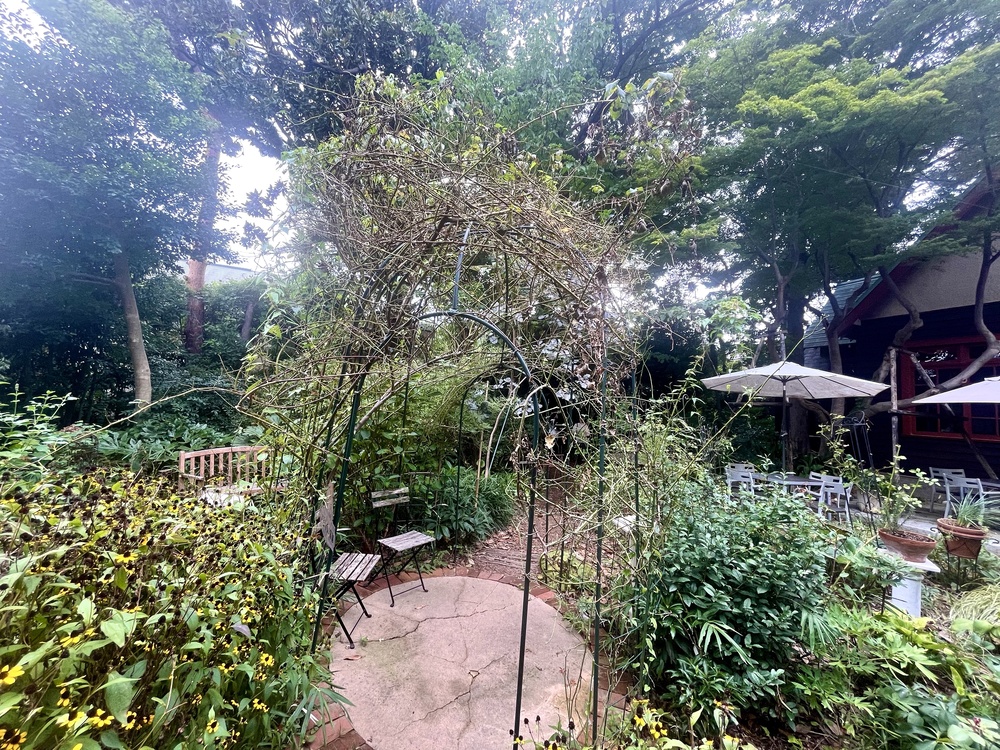 とても広いお庭で、森の中の隠れ家をたずねて行くような気分です。