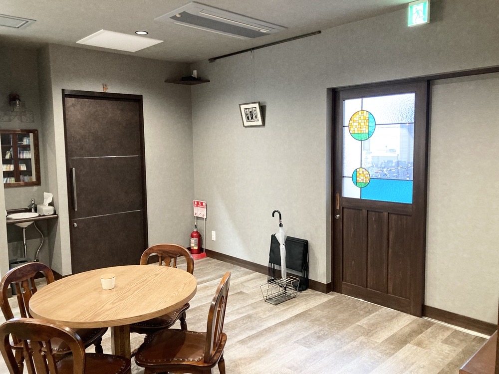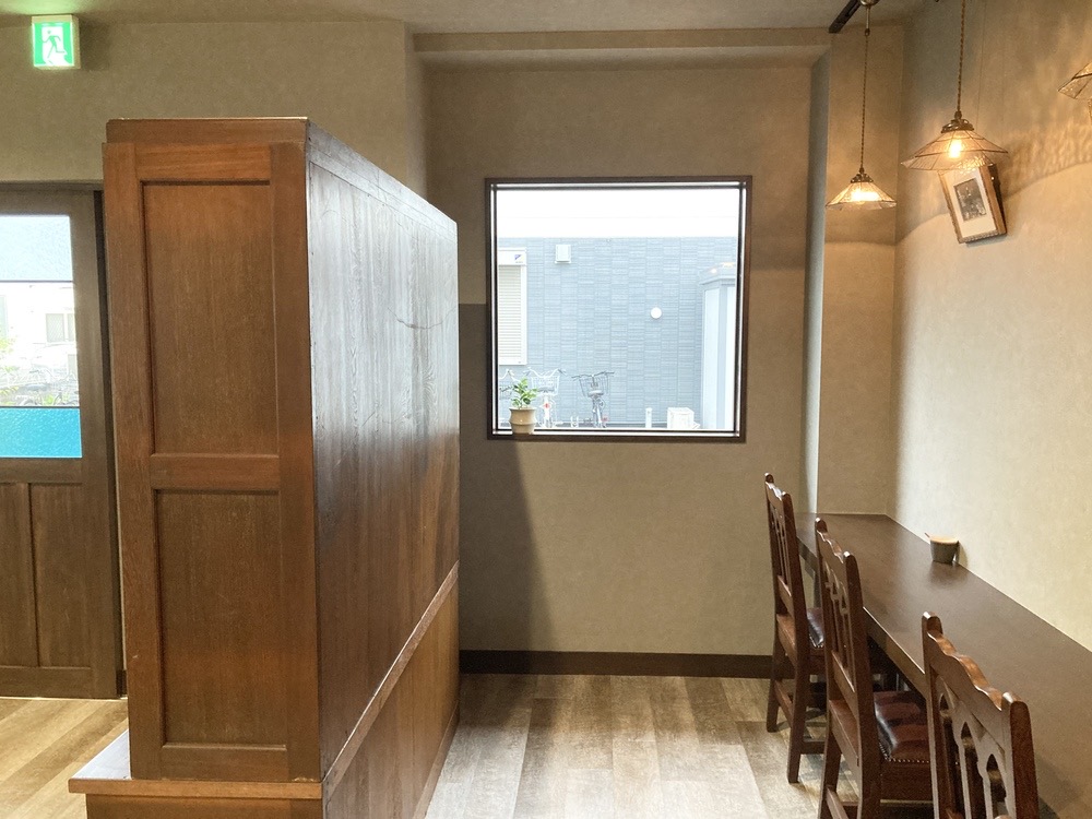 入口の引き戸を開けて、店内に入ると広々とした空間と落ち着いた色調の家具が目に入ってきました。