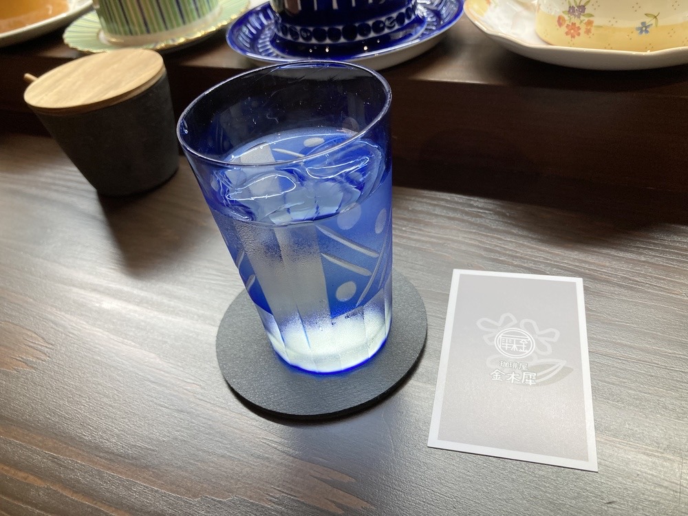お水が入っている江戸切子のグラスは色がとても綺麗です♪
