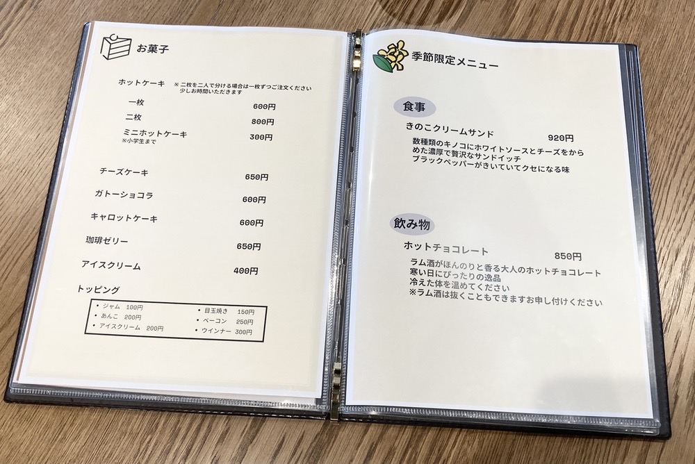 メニューには、スイーツではなくお菓子と書いてあるのも、オーナーさんのさりげないこだわりですね♪