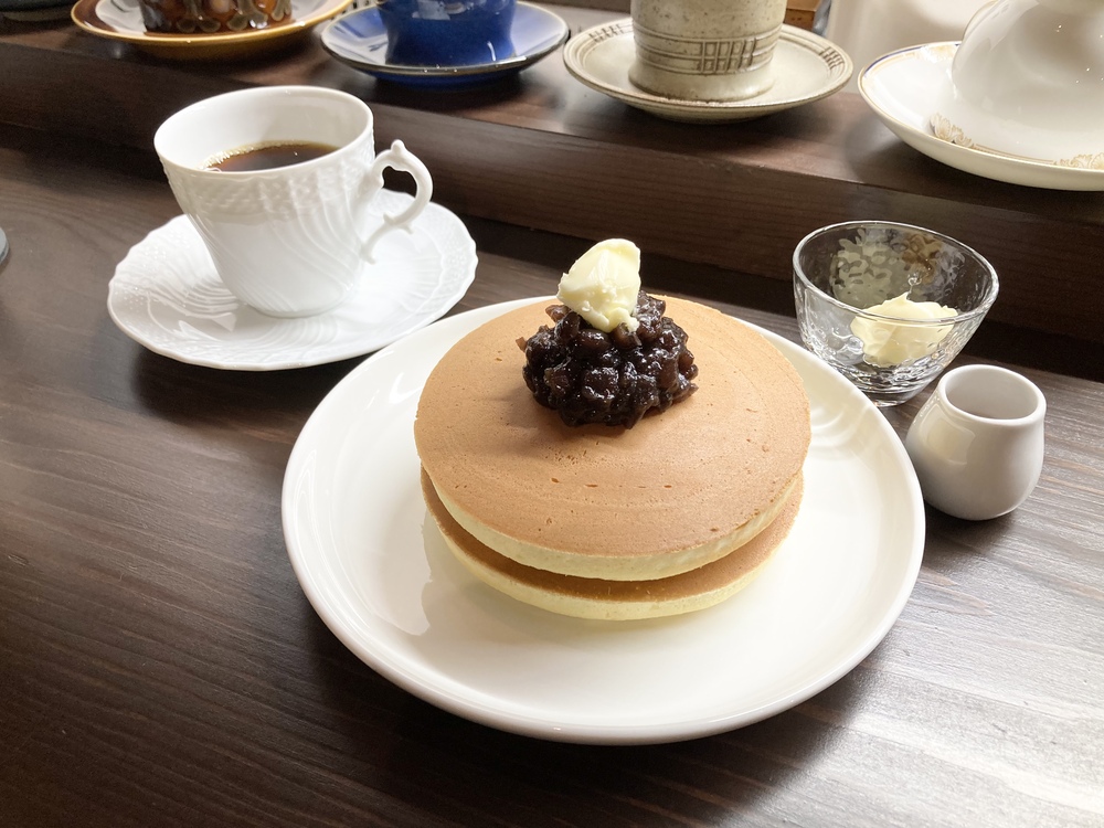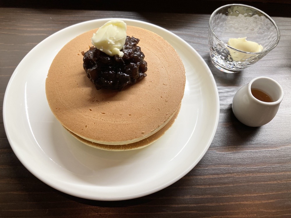 あんバターのホットケーキを2枚ペロリとたいらげたのに、どうしても気になるケーキを発見してしまい…。