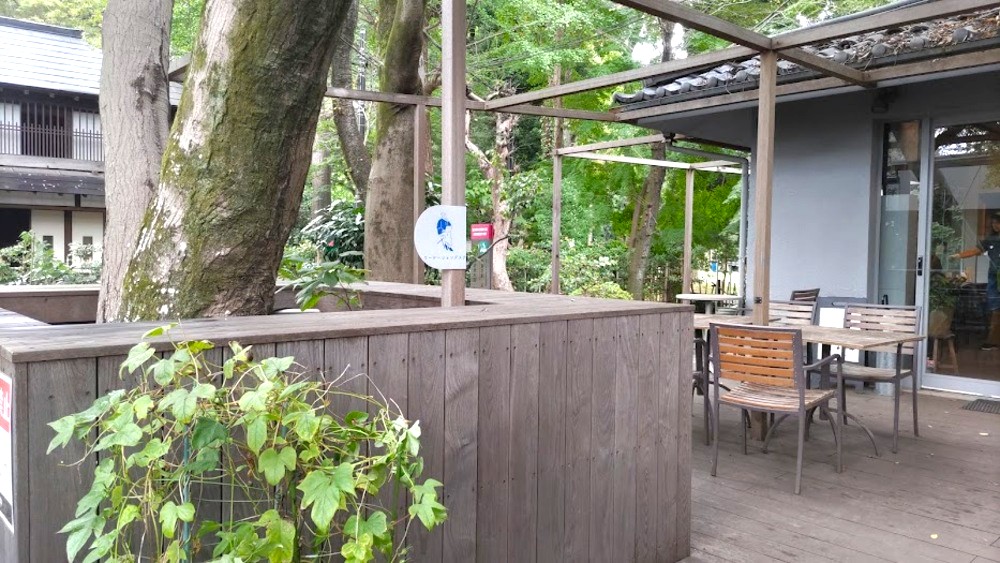 木製のテラス席からも、周囲の美しい湧水や緑を堪能できるようになっていました。
