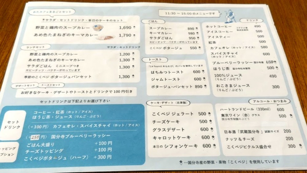 おたカフェでは、国分寺野菜、通称こくベジをふんだんに使ったメニューが提供されています。