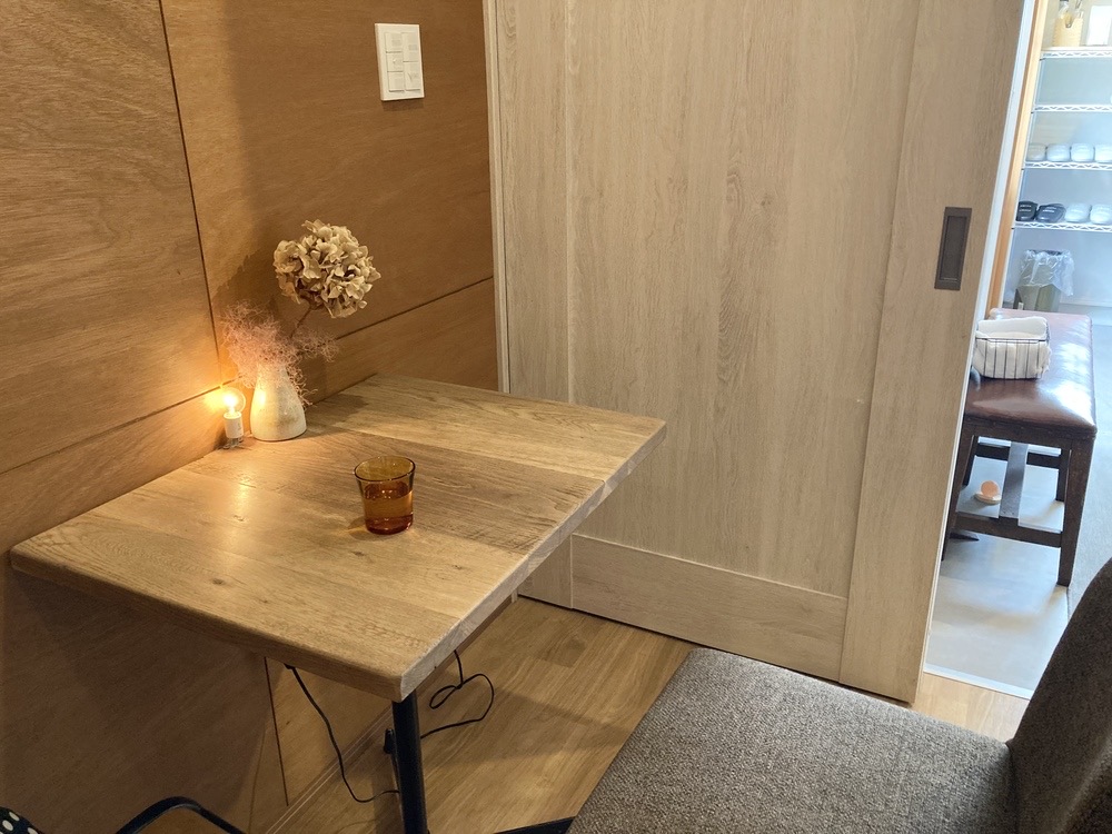いくつもある席の中で、すみっこが好きな私は、この席が目に留まりました。