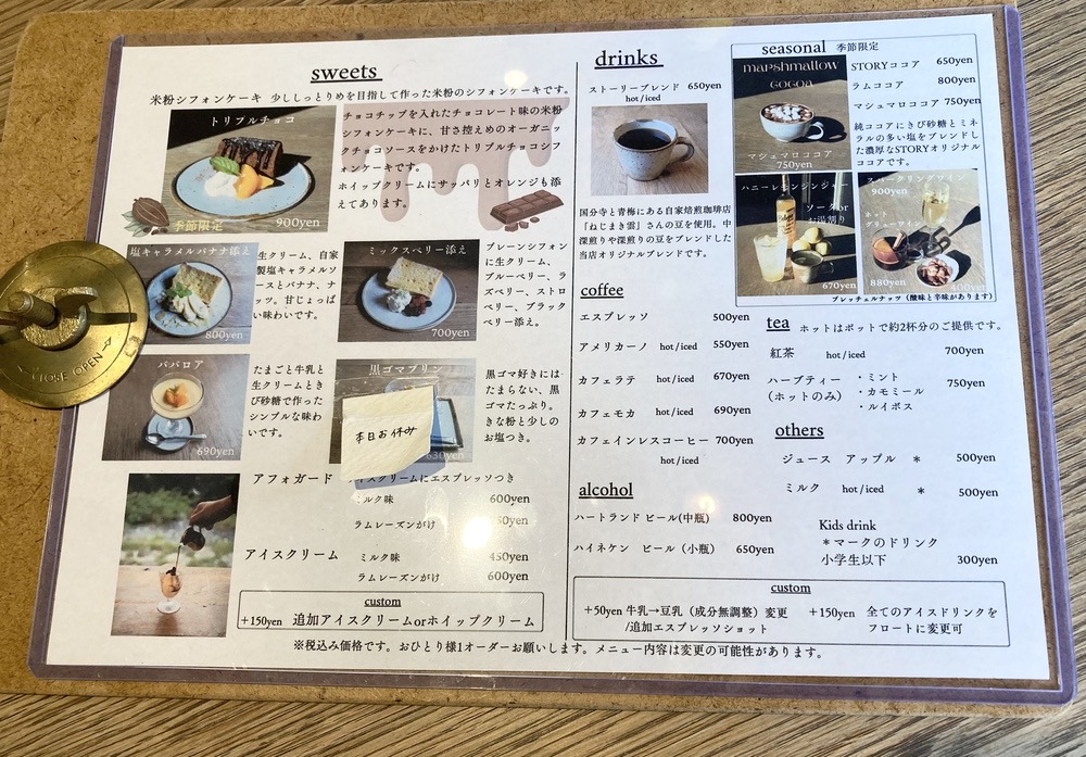 近くにある珈琲屋金木犀のオーナーさんから、黒ゴマプリンがとてもおいしいと聞いていたのですが、この日はお休みでした。次回の楽しみにしたいと思います♪