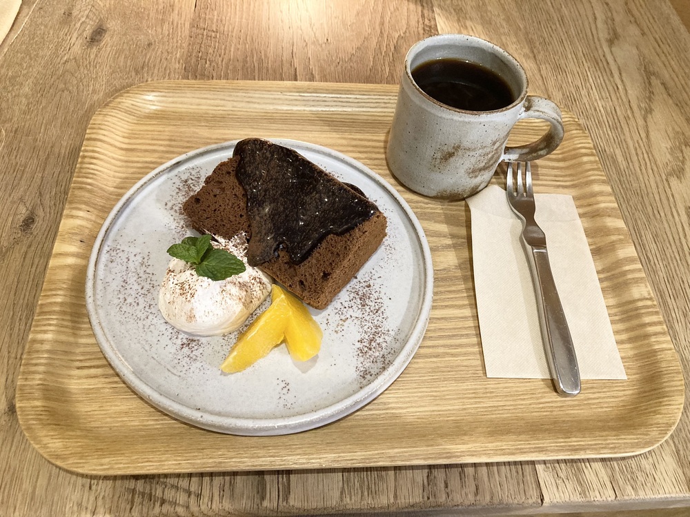 どうしてもシフォンケーキが食べたくて、トリプルチョコとコーヒーを注文しました♪
