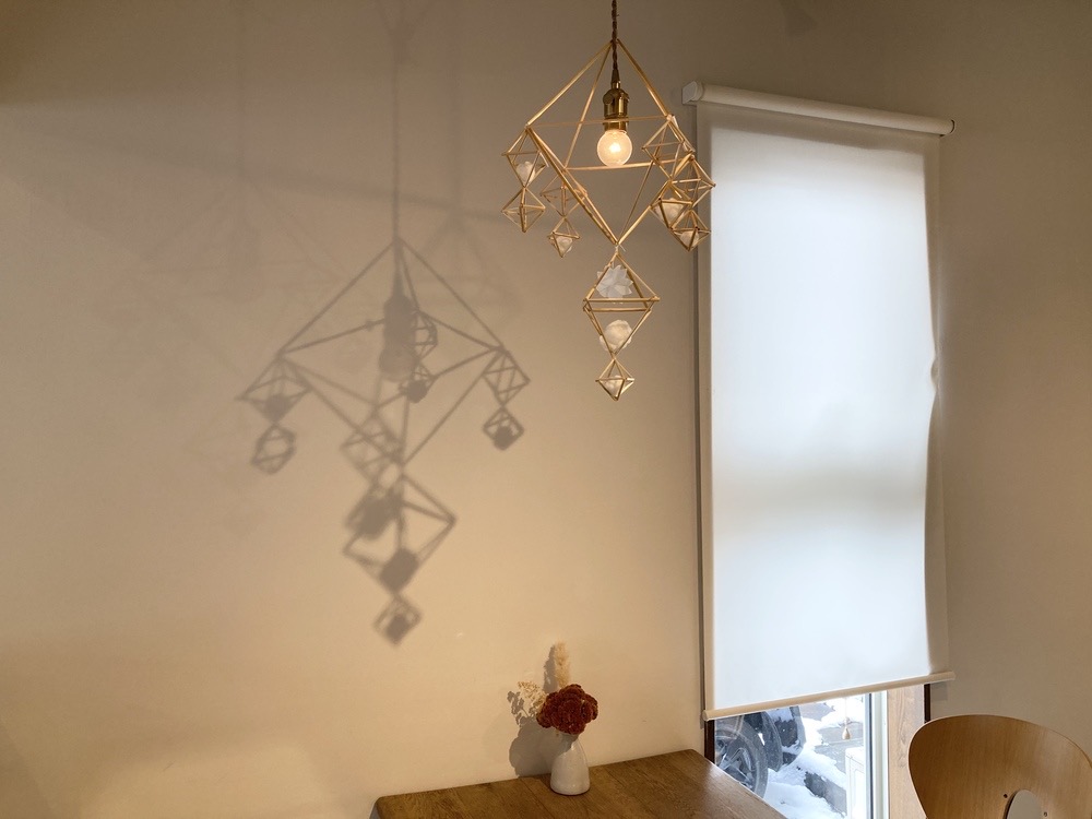 こちらは美しい照明器具ですが、その影は私にはサーカスのピエロのように見えます(笑)。