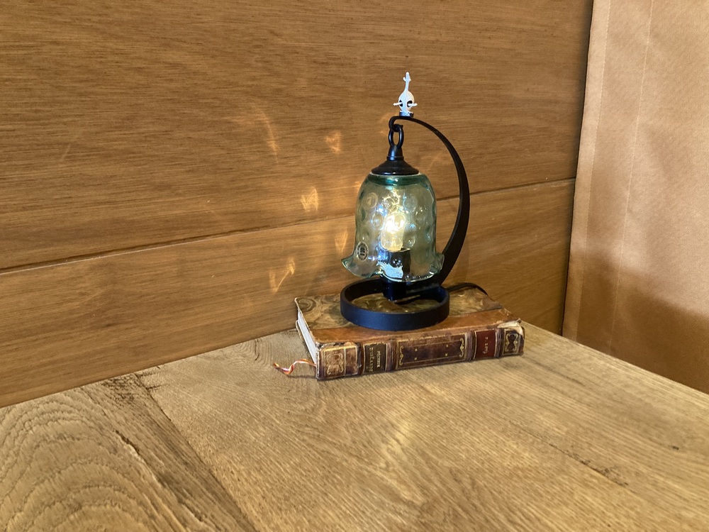 そして何よりもセンスが光るのは、この照明ランプが、かなり古びた書籍の上に置かれているということです。