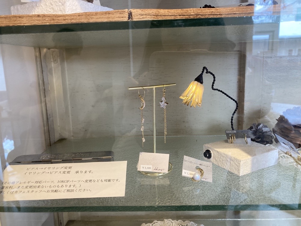 アクセサリーはお店のスタッフさんが製作されていて購入もできます♪