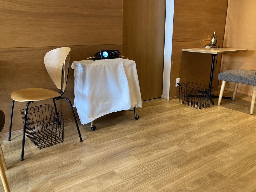プロジェクターから木の壁に直接投影されていました。