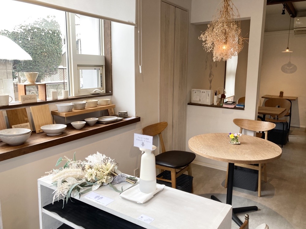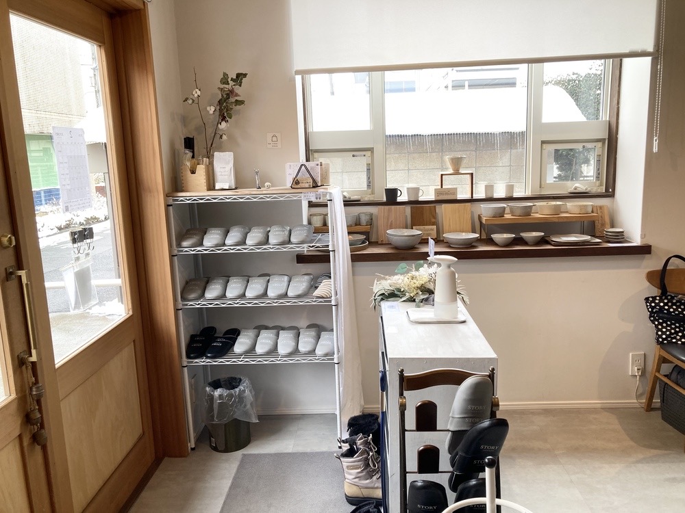入口を入ってすぐ左の窓の前には、コーヒーカップやお皿などの陶器が並べられていて販売もしていました。