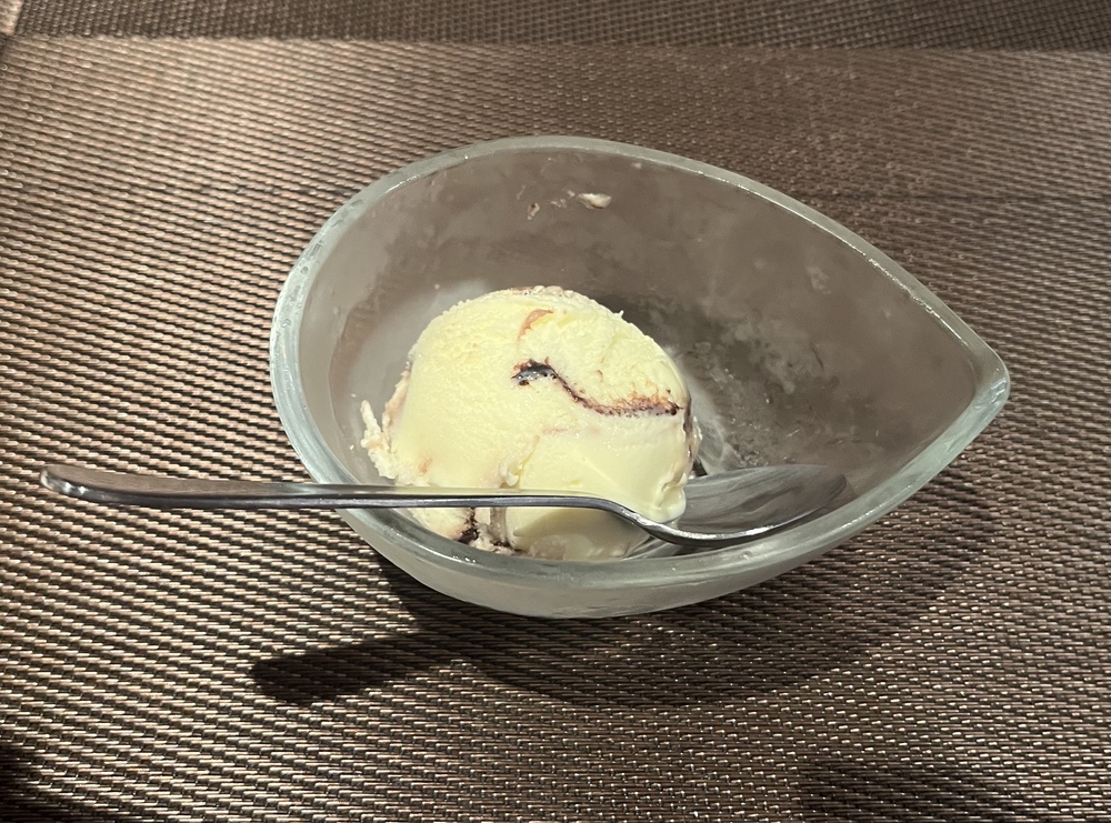 チョコが少し入ったバニラアイスのほどよい甘みでしめくくり。