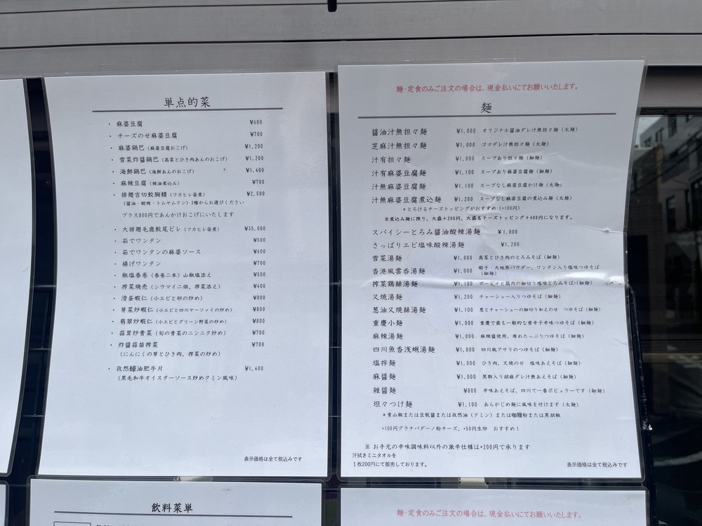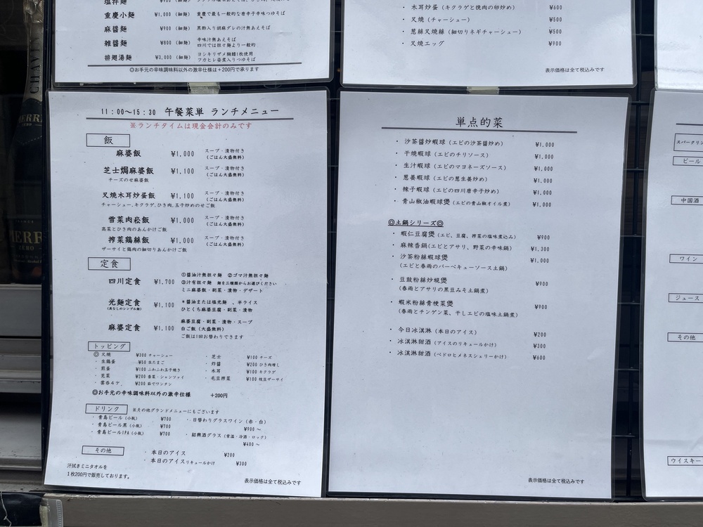 食事は坦々麺も麻婆豆腐も食べたいので、両方が味わえる四川定食をたのみました。