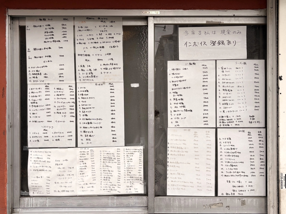 外壁にはメニューがずらりと貼られていて、その品数の多さにまず驚きます。