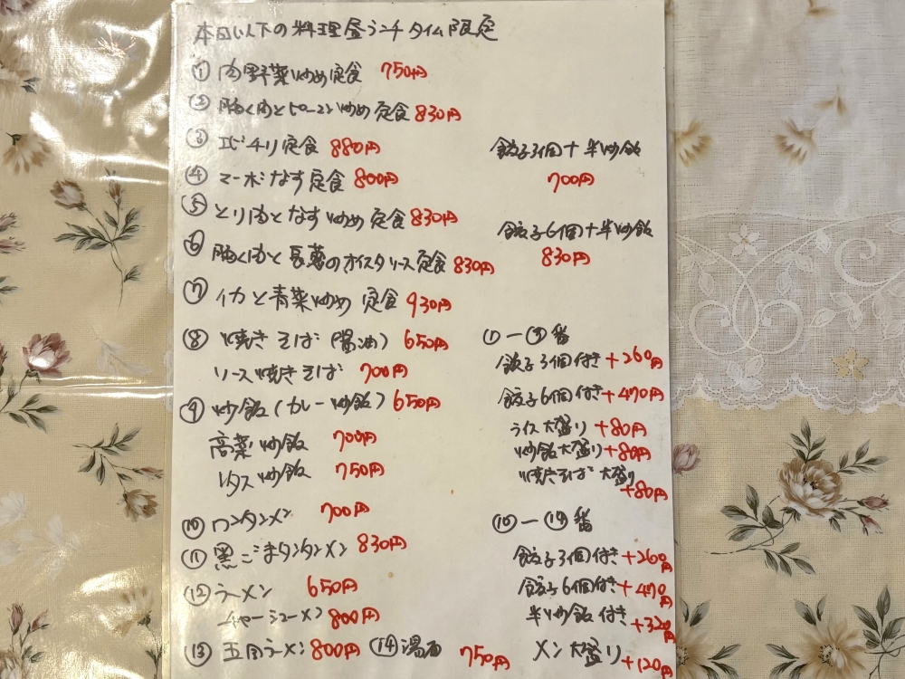 ランチメニューを見てみると、外に書いてあったものより少しリーズナブル!