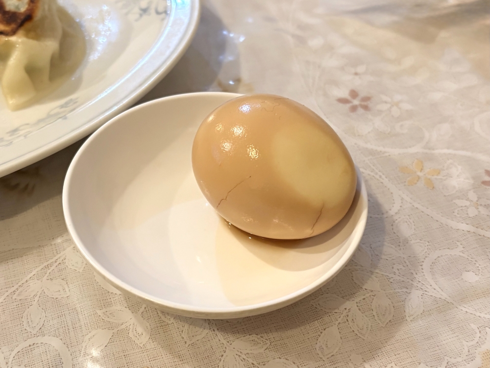 そんな中、まず運ばれてきたのは大ぶりの餃子が3つ。そして、味玉です。