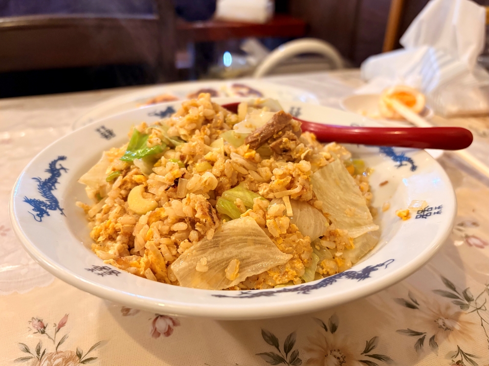 レタスチャーハンは、たまごもレタスも大きめで、ふわふわとシャキシャキのコントラストが心地いい。