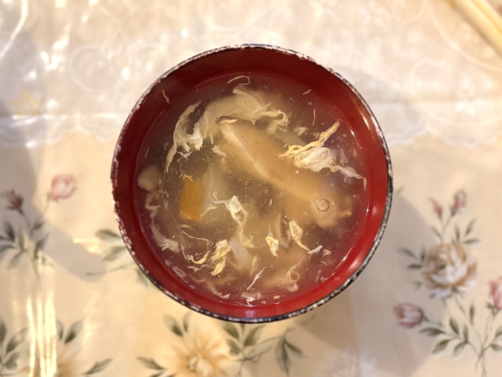 そうこうしているうちに、中華スープも運ばれてきました。