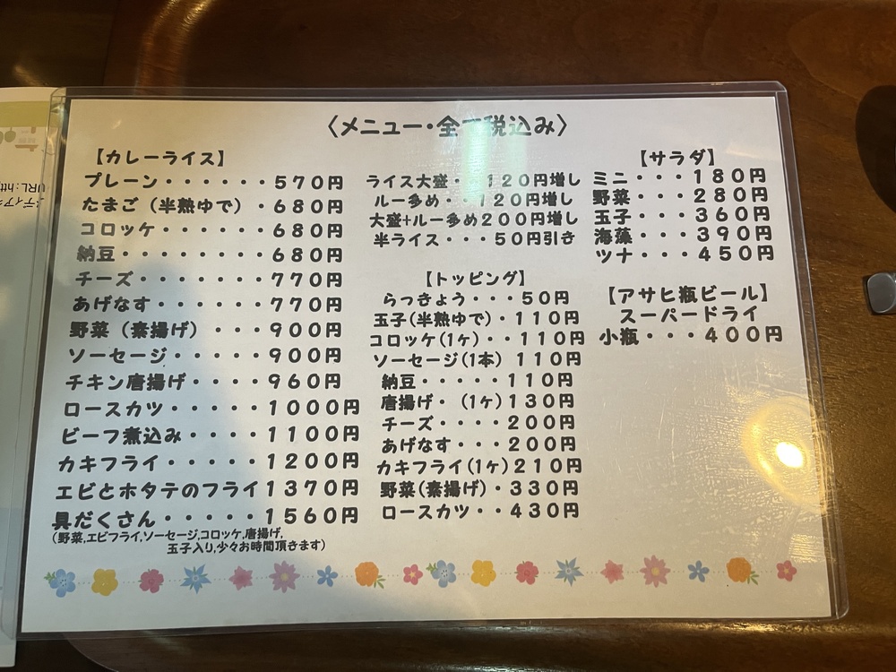 表に出ていた今日の限定カレーのチーズinハンバーグカレーにも心ひかれますが、今回は野菜カレーをチョイスしました。
