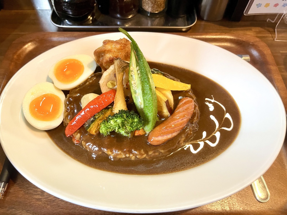 最後に半熟のたまご。トロトロの黄身をカレールーと混ぜていただくのもいいですね。
