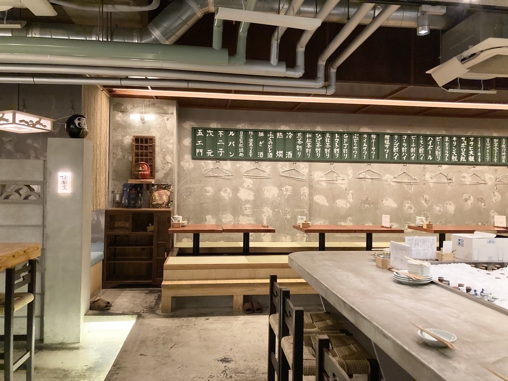 まず、目に入ってきたのは、コンクリートの打ちっぱなしの壁と中央の大きなカウンターでした。