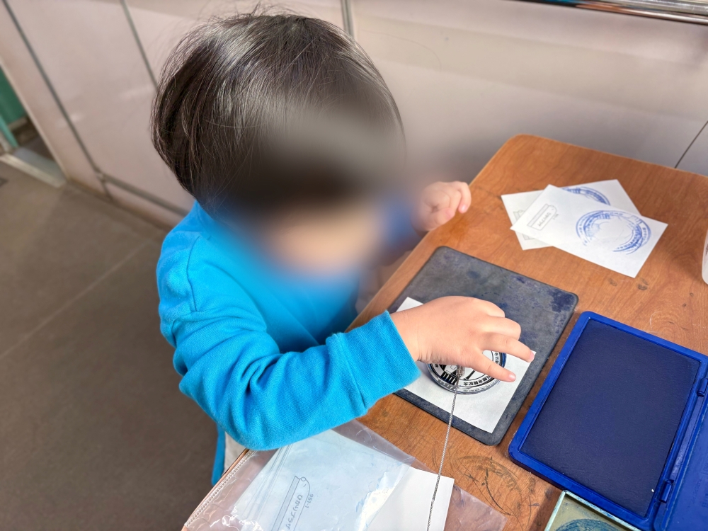 受付の方に、「マンホールカードいただけますか?」と声をかけると、にこやかに子どもへ手渡してくださり、わが子は、ぱっとうれしそうな表情に。