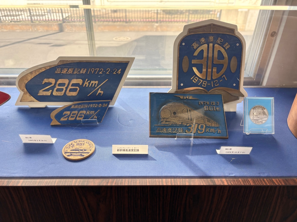 車内には、新幹線の歴史を紹介するパネルや、当時の記念レリーフなども展示されています。