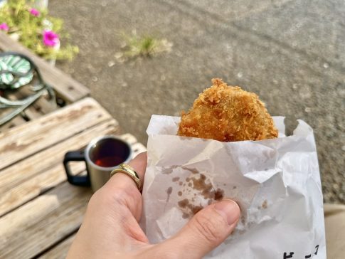 チーズクリーム入りコロッケは、里芋にチーズが合わさり、なめらかさにむっちりがプラスされ、最強の食感!個人的イチオシです♪